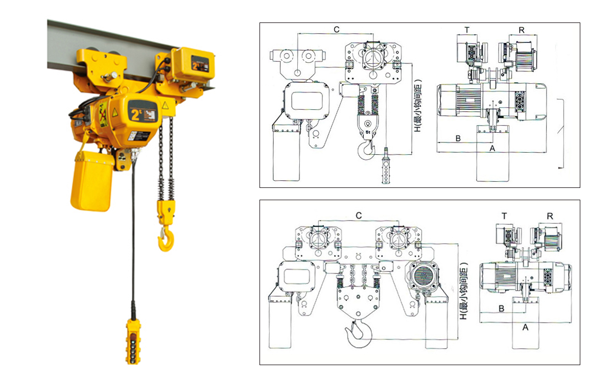 低凈空環(huán)鏈電動(dòng)葫蘆適用于廠房高度較低又對(duì)提升高度有嚴(yán)格要求的工作場(chǎng)所使用,尤其適用于臨時(shí)搭建的廠房?jī)?nèi)或者在其內(nèi)需要擴(kuò)大有效起升空間的場(chǎng)所。低凈空環(huán)鏈電動(dòng)葫蘆由2個(gè)跑車(chē)以及一個(gè)電動(dòng)主機(jī)組合而成。