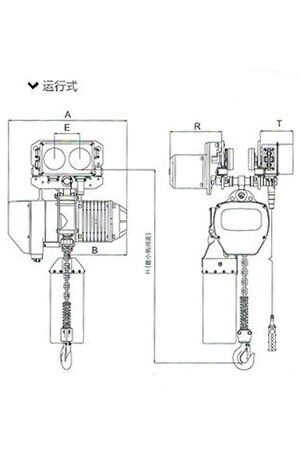 運行式環(huán)鏈電動葫蘆(0.25T-5T) 尺寸參考: